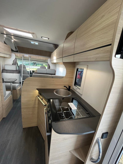 The Chausson C656 is a family friendly motorhome designed for a maximum 4 adults and 2 children with 7 seatbelts. Ideal for transporting all the family. It has various areas which would allow the adults to escape the youngsters in the evening to which the children could make the mid dinette area their base for the evening.